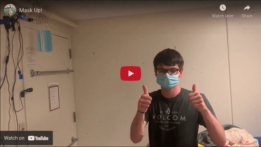 We created a device that automatically detects if a person is walking through a doorway without a mask, and if no mask is found, drops a mask onto them from overhead. The device stores masks on a corkscrew, which a stepper motor turns to drop the masks. The device detects maskless faces using a webcam mounted at eye-level, which is plugged into a laptop. The laptop runs a computer vision (CV) algorithm, and sends signals to a companion computer that performs the actuation. The system also features an infrared (IR) sensor, which will measure temperature and send you a text if your temperature is too high.